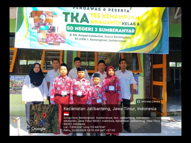 TKA (Tes Kemampuan Akademik) adalah asesmen standar nasional yang dirancang untuk mengukur capaian akademik dan penguasaan konsep inti siswa pada mata pelajaran tertentu. TKA bertujuan memberikan data objektif mengenai capaian belajar individu murid untuk seleksi ke jenjang berikutnya. SD Negeri 3 Sumberanyar melaksanakan TKA pada gelombang 2 sesi ke 1 yaitu pada hari Rabu dan Kamis tanggal 22-23 April 2026 yang dilaksanakan secara mandiri dan online. Pelaksanaan TKA sendiri pada hari pertama berjalan lancar. Materi pada hari pertama yaitu mata pelajaran matematika yang meliputi bilangan, geometri, pengukuran, dan data mengukur kemampuan penalaran, pemecahan masalah matematis, serta representasi matematis, sedangkan hari kedua yaitu bahasa indonesia yang meliputi fokus pada keterampilan membaca, pemahaman tekstual, inferensial, serta evaluasi teks informasi dan fiksi.